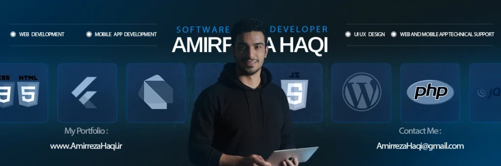 سلام ، امیررضا جلوس حقی هستم از سال 98 که وارد دانشگاه شدم به برنامه نویسی علاقه مند شدم با برنامه نویسی فرانت و یاد گیری جاوا اسکریپت شروع کردم ولی جلوتر که رفتم دنبال یک چیز خاص میگشتم که فلاتر رو پیدا کردم و تونستم باهاش ارتباط خیلی خوبی بگیرم و از کد نویسی باهاش لذت میبرم همین باعث شد که حوزه فعالیتمو به فلاتر تغییر بدم ، علاوه بر فلاتر من تو زمینه های طراحی وبسایت با وردپرس و طراحی رابط کاربری هم فعالیت دارم.